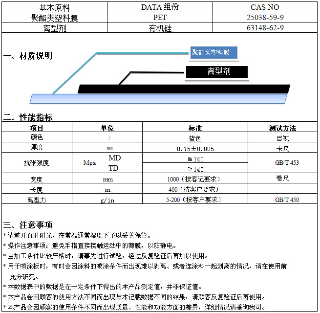 一、离型膜基材属于聚酯类塑胶薄膜,柔韧度与抗张强度性能非常好,可重复使用,
